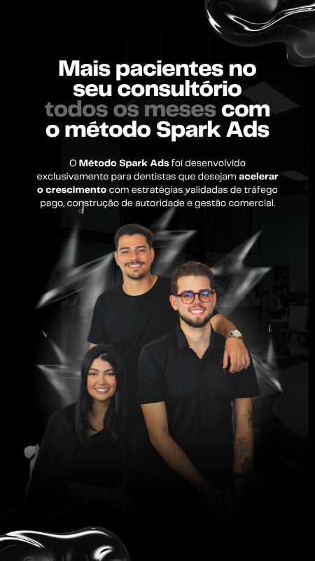 O Método Spark Ads foi desenvolvido exclusivamente para dentistas que desejam acelerar o crescimento da clínica com estratégias validadas de tráfego pago, construção de autoridade e gestão comercial.
